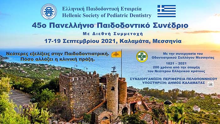 Το 45ο Πανελληνίο Παιδοδοντικό Συνέδριο θα διεξαχθεί σε υβριδική μορφή, δια ζώσης και διαδικτυακά, έτσι όπως ορίζεται από τα παρόντα ισχύοντα μέτρα για τα συνέδρια και τις ομαδικές συναθροίσεις, λόγω της πανδημίας.